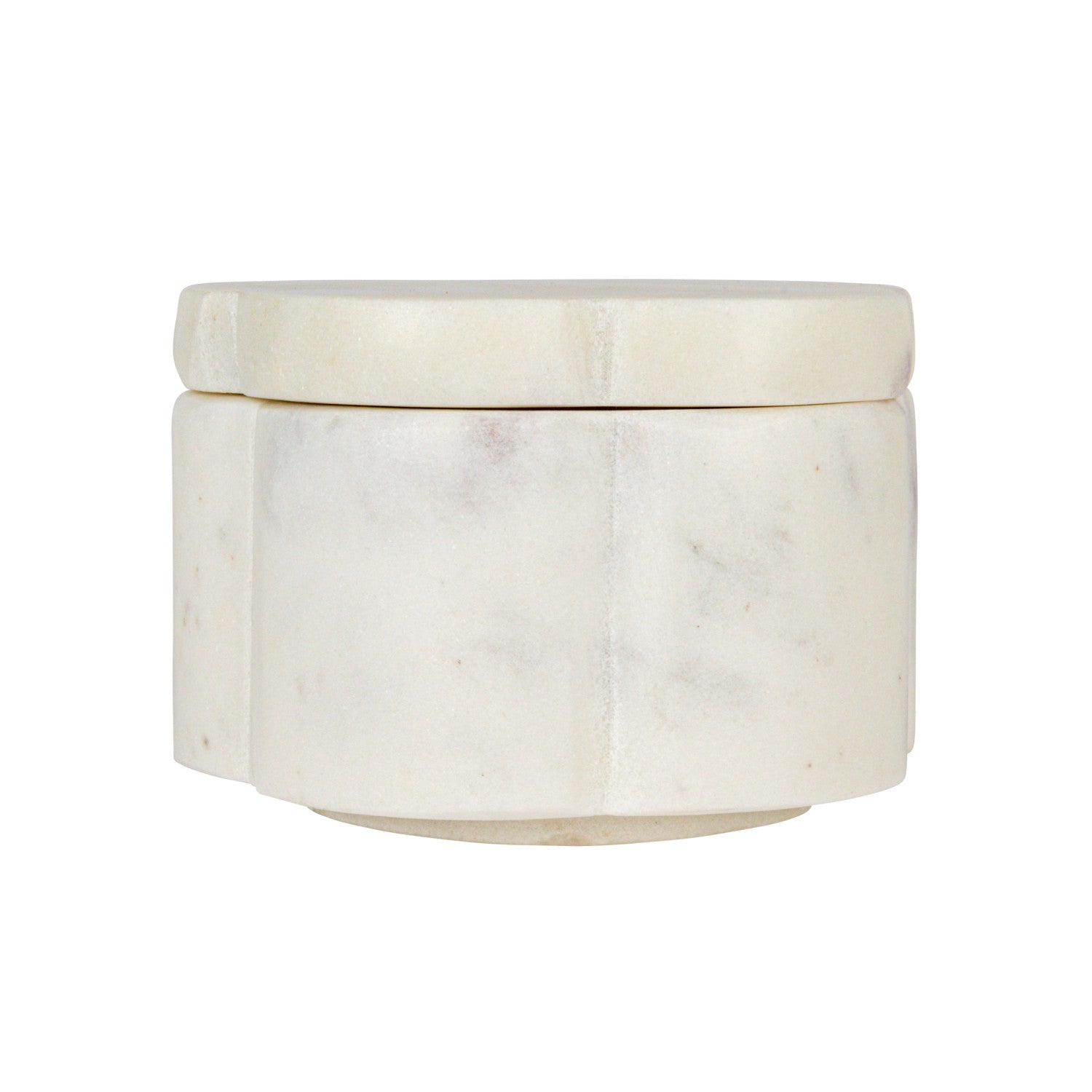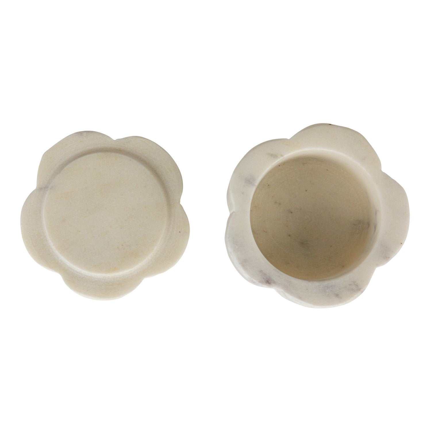 3-1/2" Round x 4-1/4"H Marble Scalloped Stackable Pinch Pots w/ Lid, White, Set of 2
