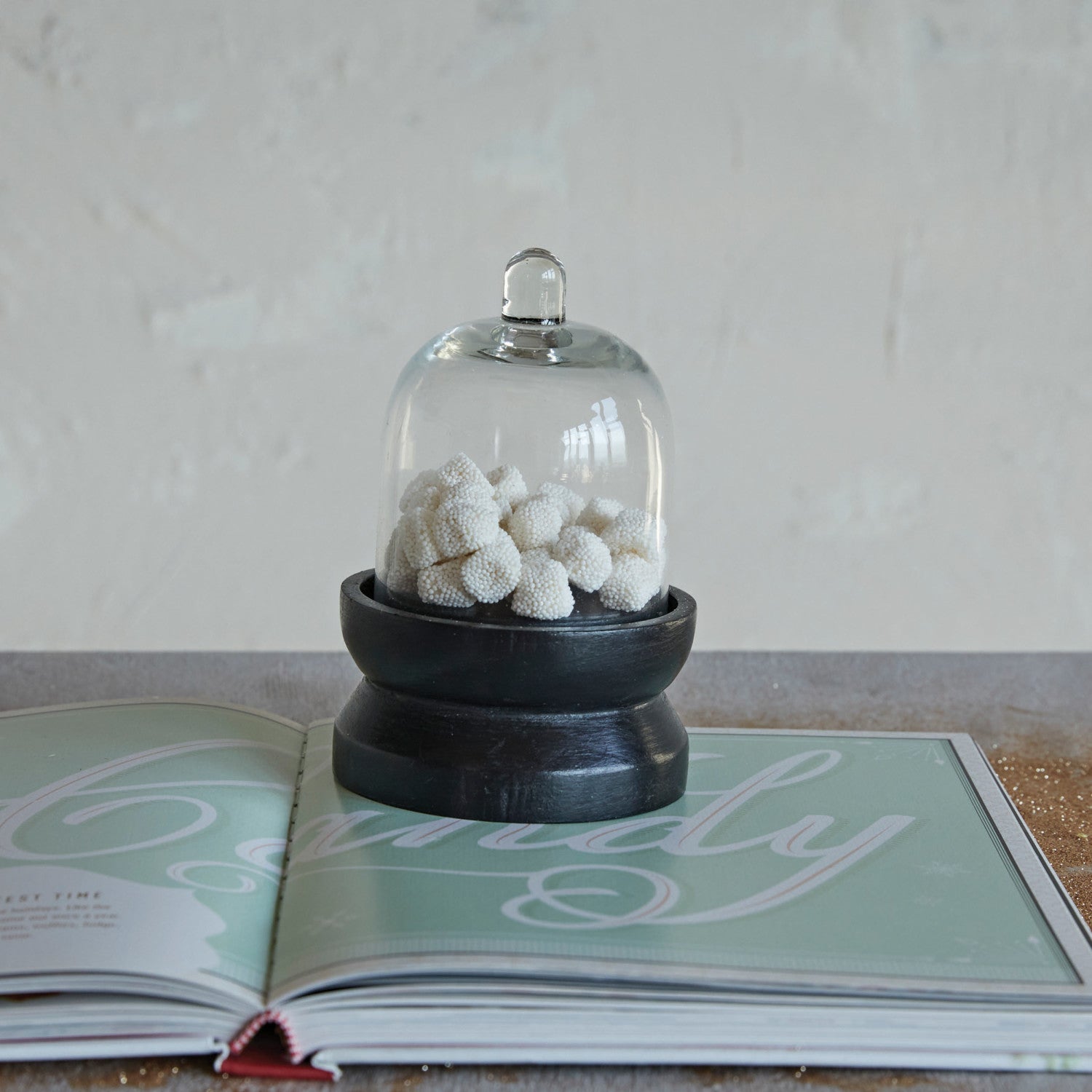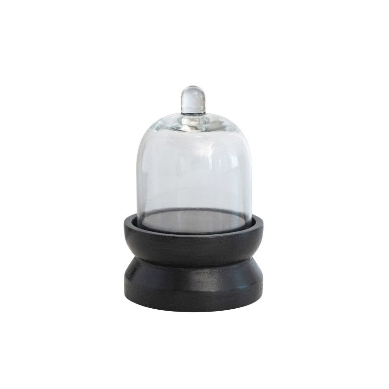 Glass Cloche w/ Mango Wood Pedestal Base