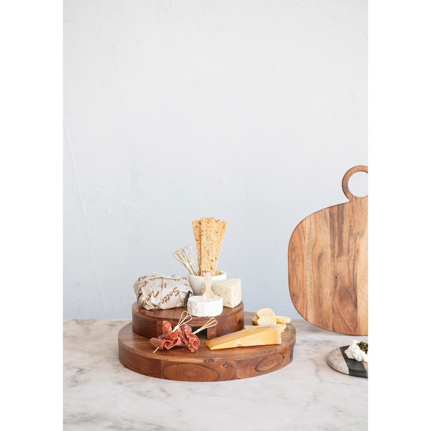 10" Round x 2"H Acacia Wood Pedestal w/ Handles, Natural