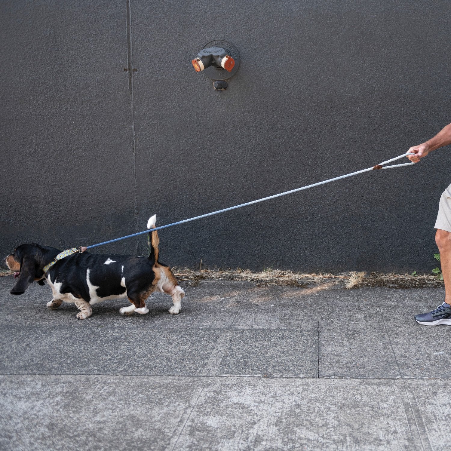 Braided Cotton Rope & Leather Dog Leash w/ Metal Clasp, 4 Colors