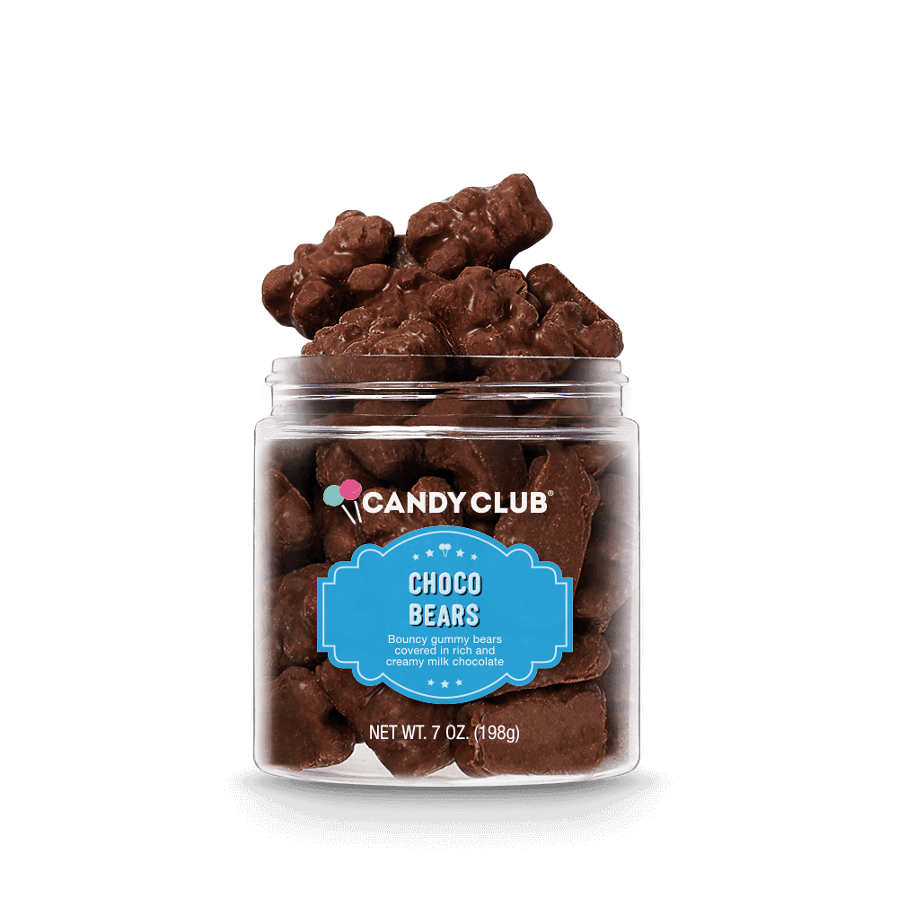 Apricot, strawberry, strawberry-banana, marshmallow, and orange-flavored bears take a dip in super-silky milk chocolate in these adorably addictive, uniquely delicious chocolate covered gummy bears.