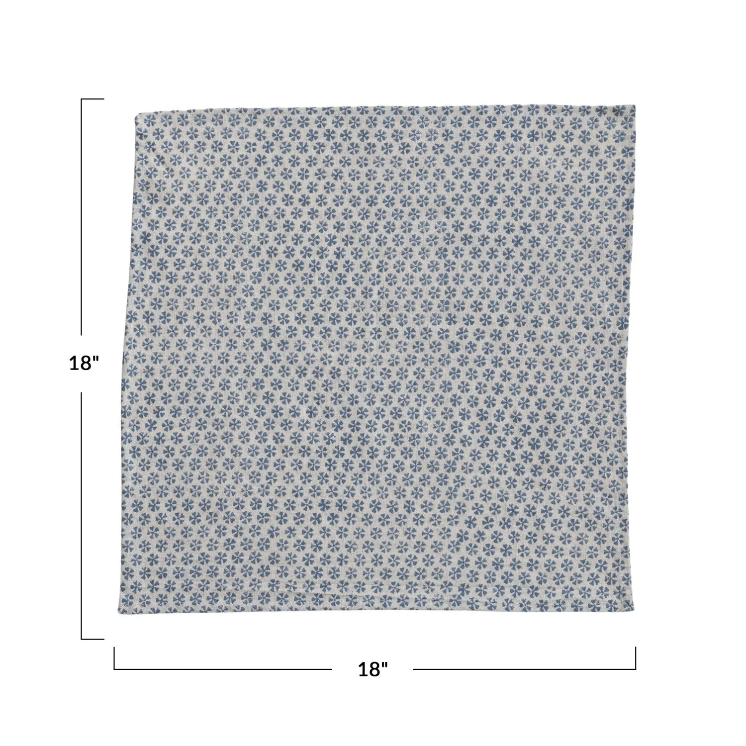 Cotton & Linen Napkins w/ Block Print Pattern, Set of 4