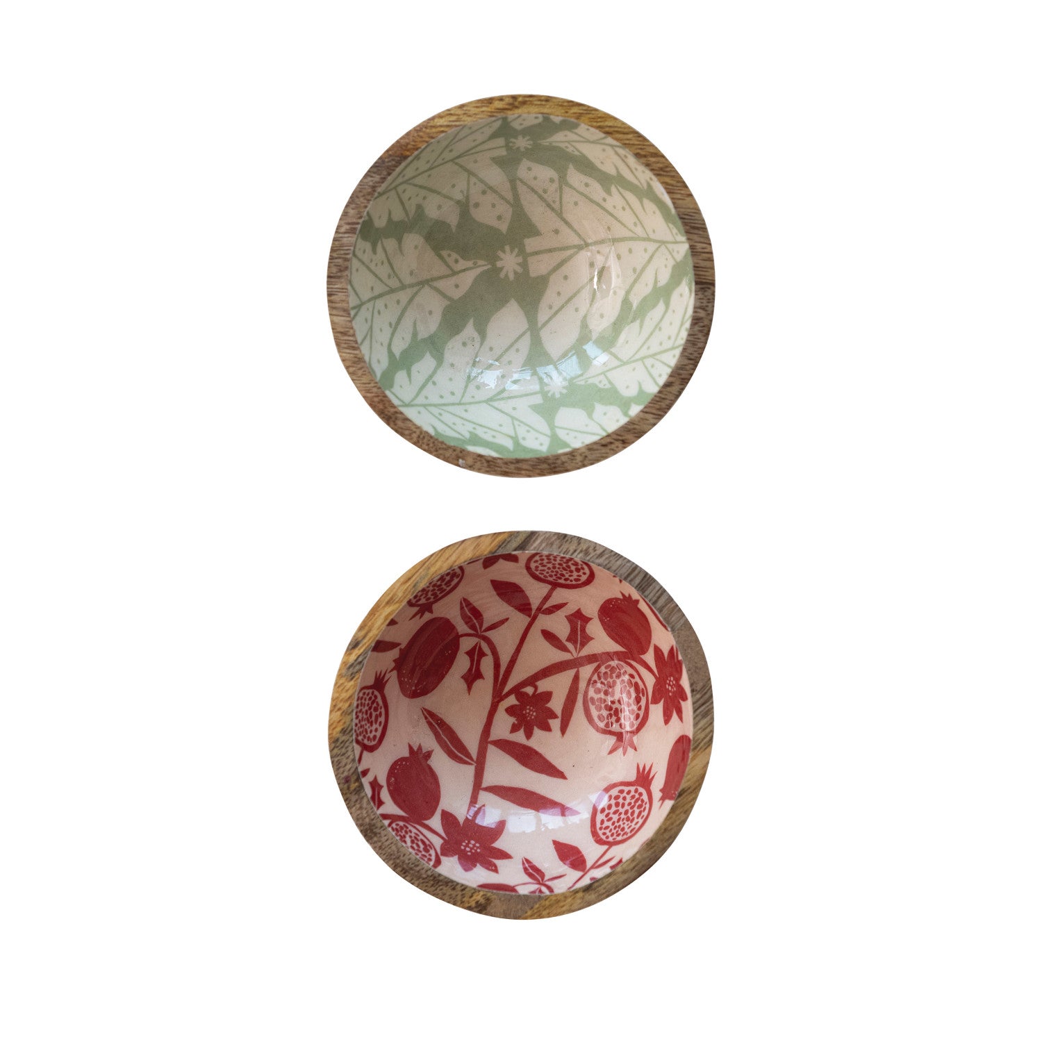 Enameled Mango Wood Footed Bowl w/ Pomegranate/Tree Pattern, 2 Styles