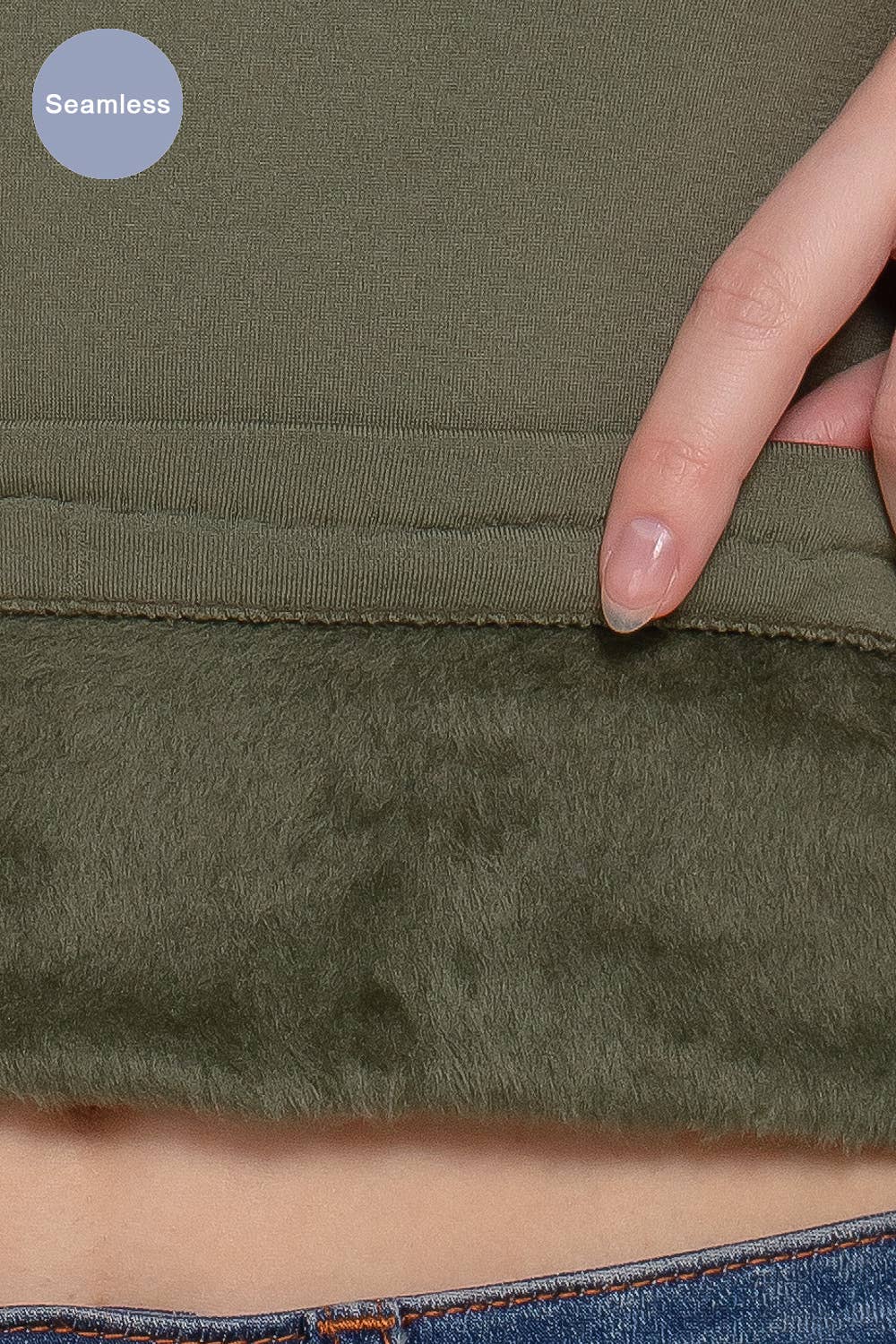 Long Sleeve Crew Neck Inner Fur Seamless Top - White