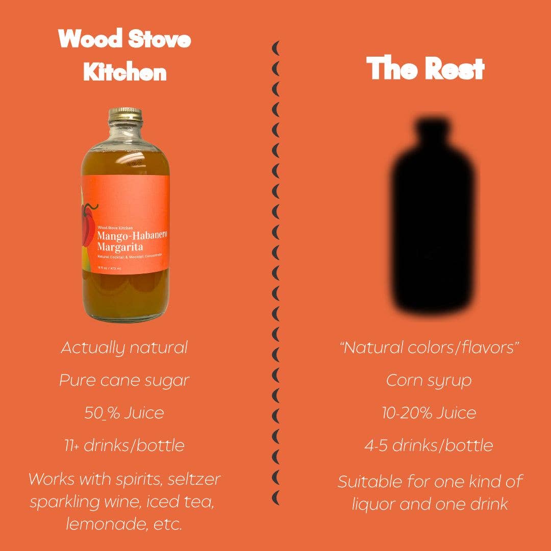 This highly concentrated cocktail and mocktail mixer is made with all-natural ingredients. We sourced the highest-quality mango juice concentrate on the market and paired it with US-grown lime juice and habanero pepper puree. The result is a sweet-tart-spicy mixer that pairs beautifully with tequila, mezcal, vodka, and rum, though we also love to add it to lemonade, iced tea, or seltzer for a refreshing summer drink. If you're feeling a bit dangerous, even try it with sparkling wine for a bold mimosa spritz. Ingredients: Water, Cane Sugar, Mango Juice Concentrate, Lime Juice Concentrate, Habanero Puree, Kosher Sea Salt Shelf Life: 24 Months; best-by date and lot code is printed on the glass. Note: We use only glass bottles, and our shipping materials are made out of molded fiber pulp which can be either re-used, recycled, or even composted.