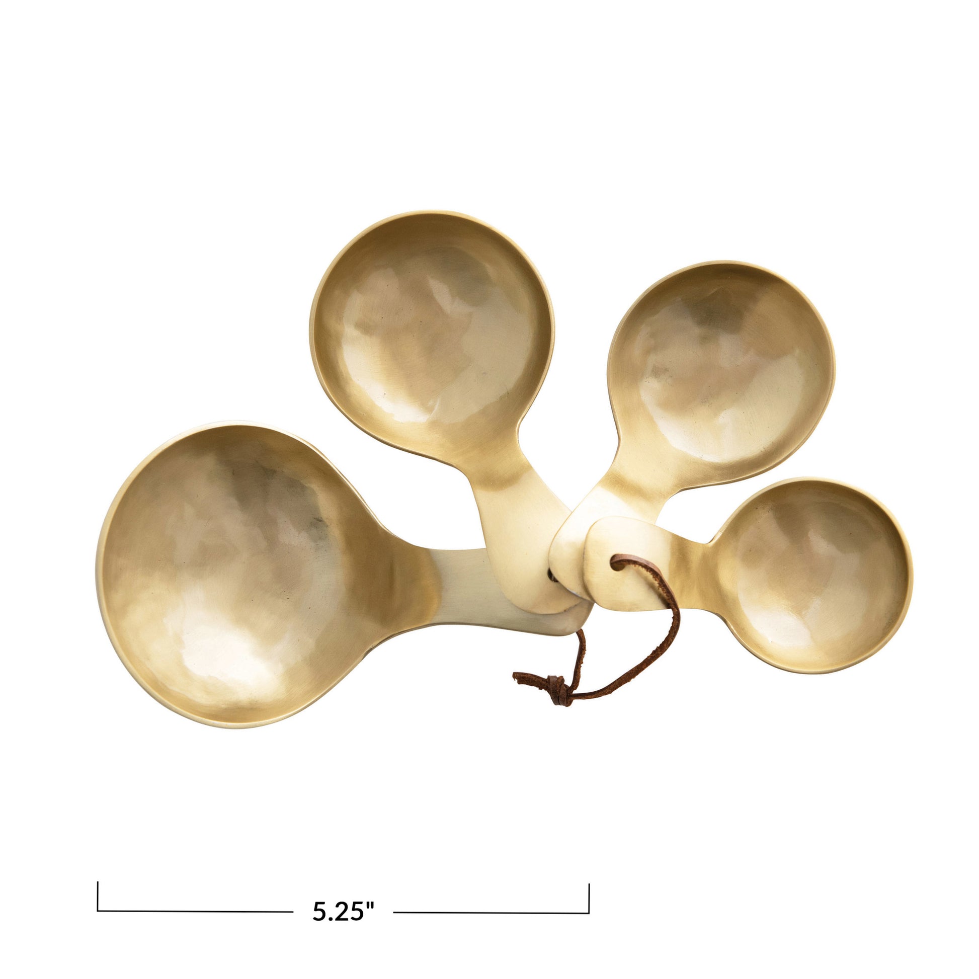These measuring spoons are a beautiful addition to any kitchen. Made out of aluminum, these spoons have a beautiful brass finish that make baking stylish and sophisticated. Comes in a set of 4