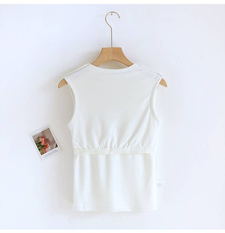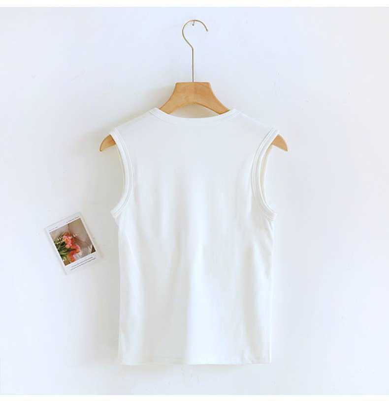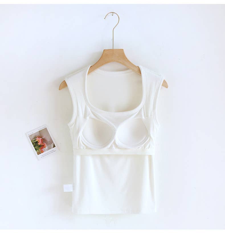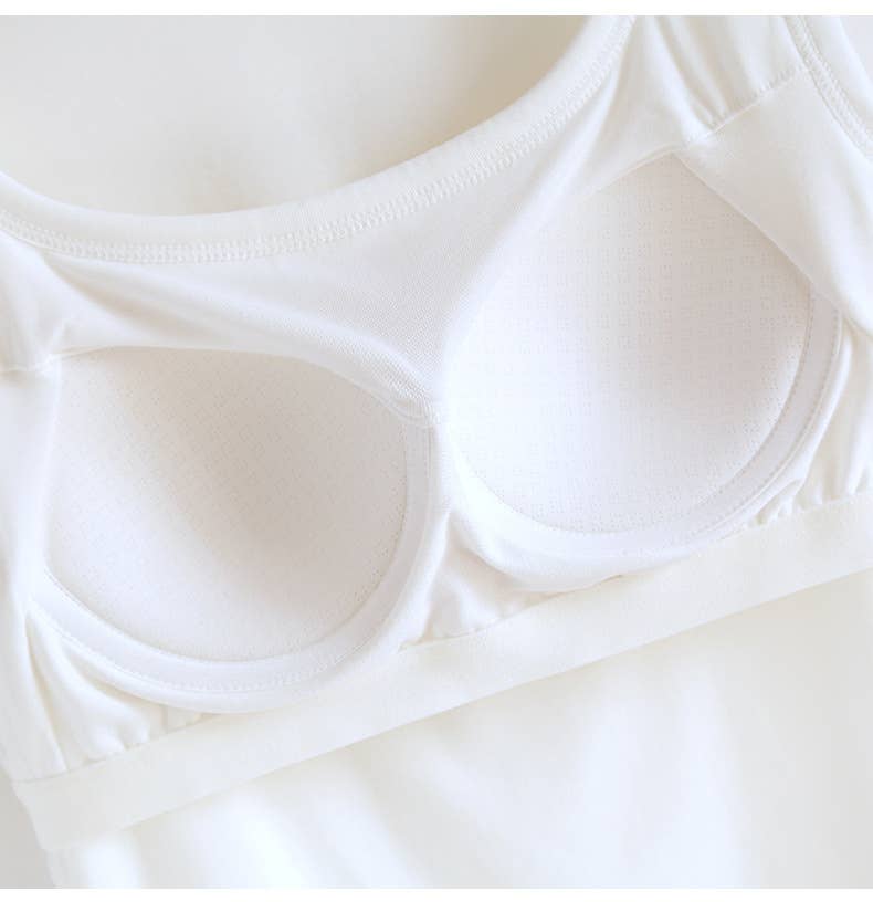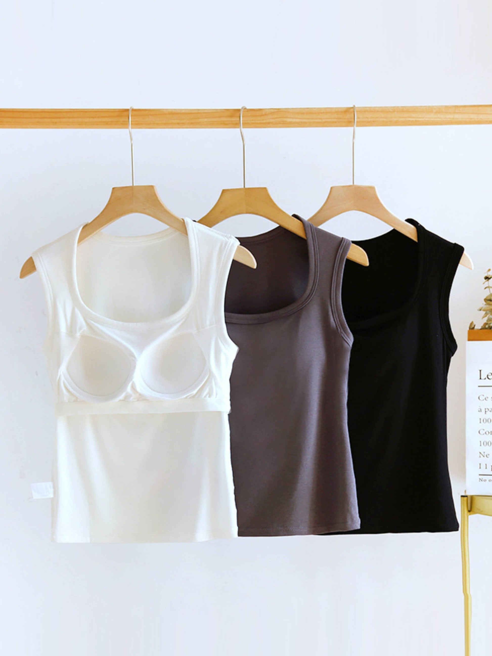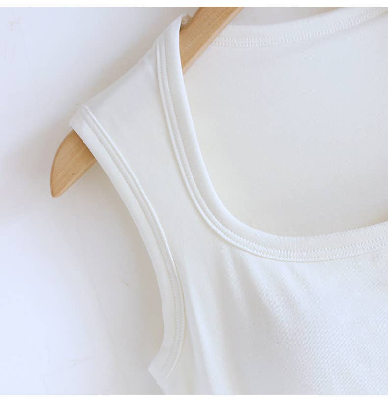 Cotton Blend Built-In Bra Tank Top w/queen anne neckline.