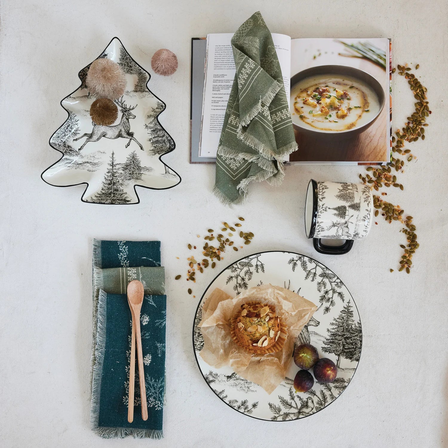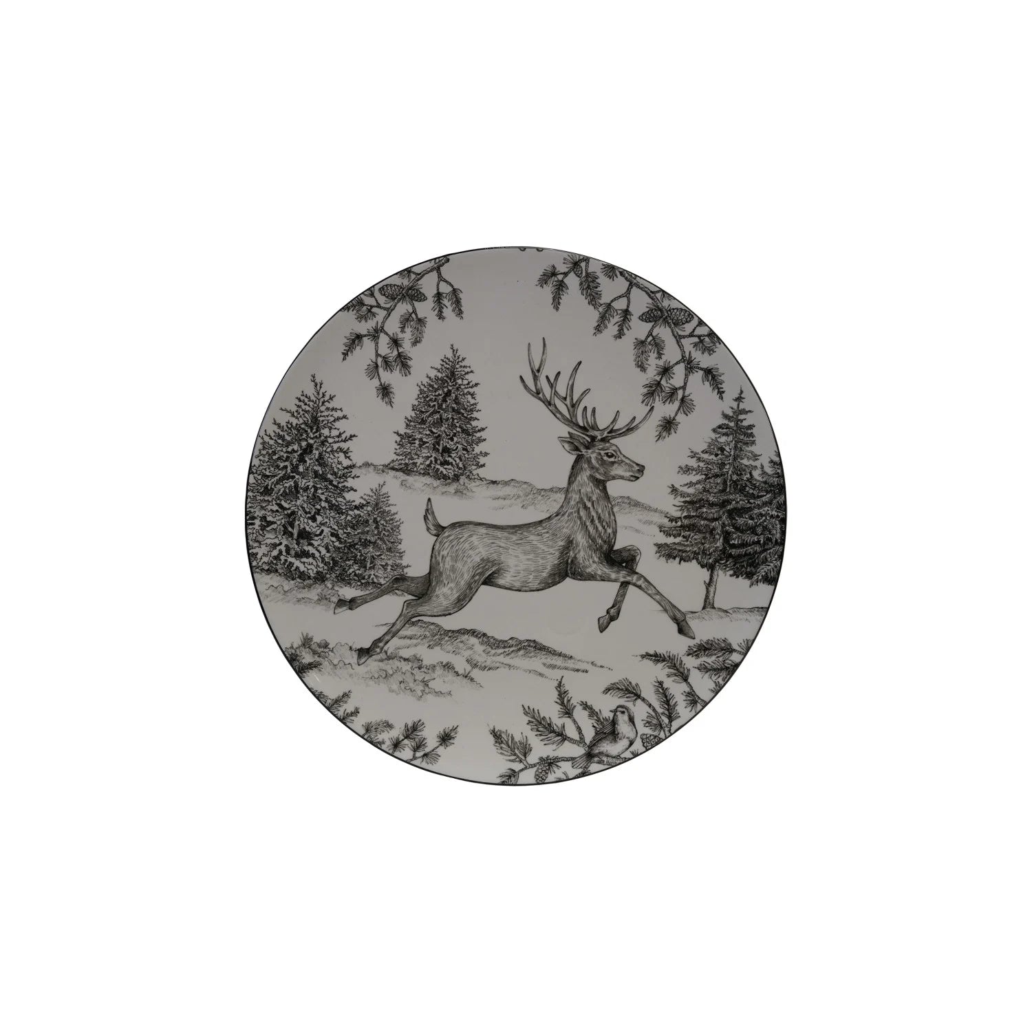 12-1/4" Round Ceramic Platter w/ Woodland Deer Scene & Colored Edge, Brown & Cream Color
