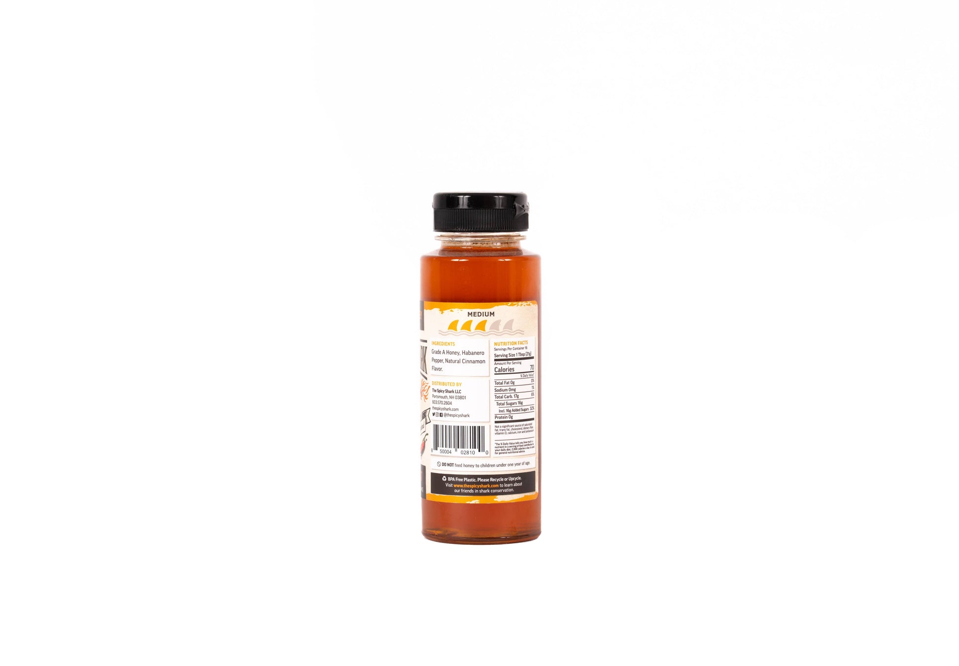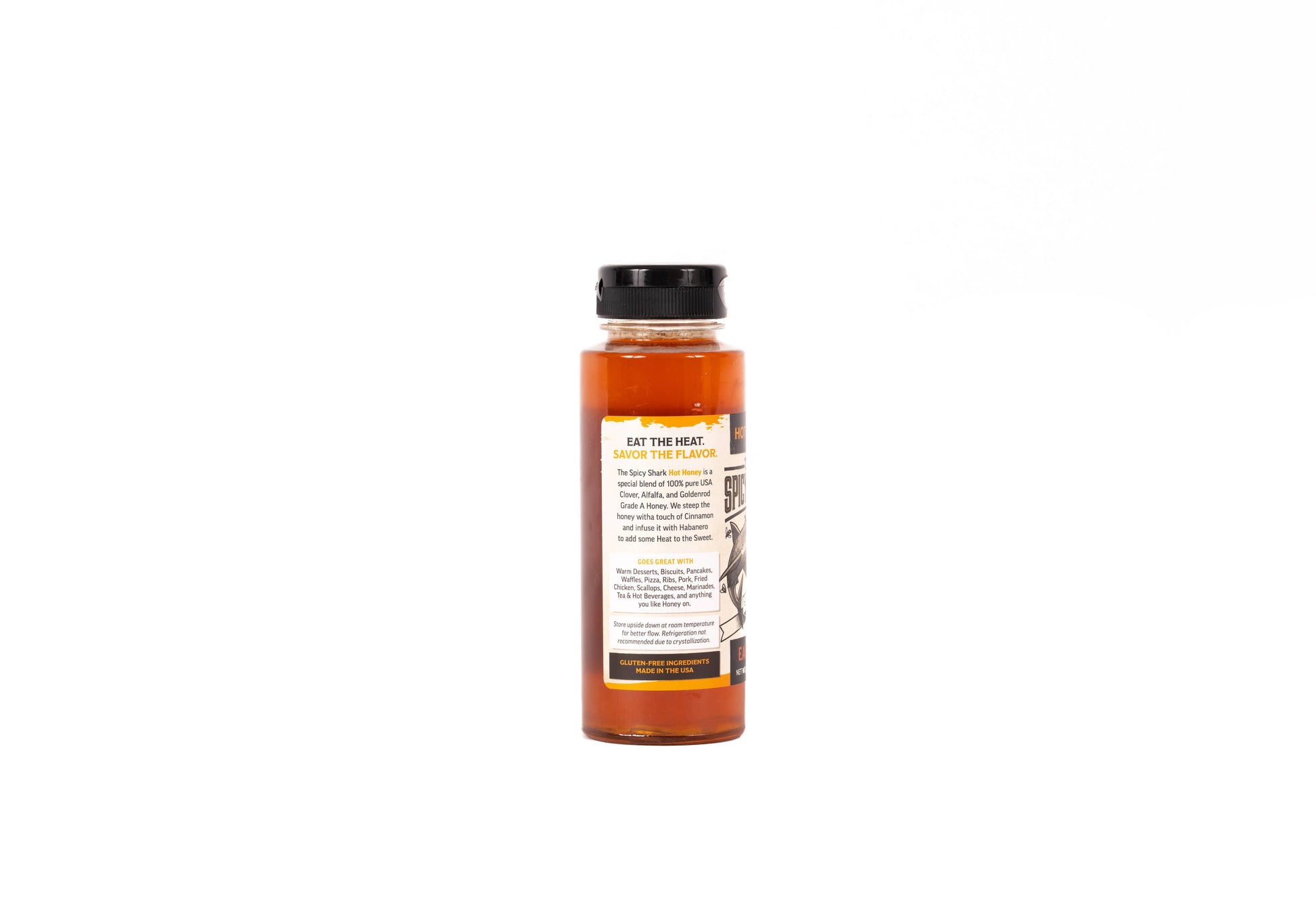 The spicy shark hot honey is a special blend of 100% pure USA clover, alfalfa, and goldenrod grade honey. We steep the honey with Habanero and a touch of cinnamon. 12 oz bottle size. Dairy Free & Gluten Free. Great as a gift or Christmas / Holiday stocking stuffer.