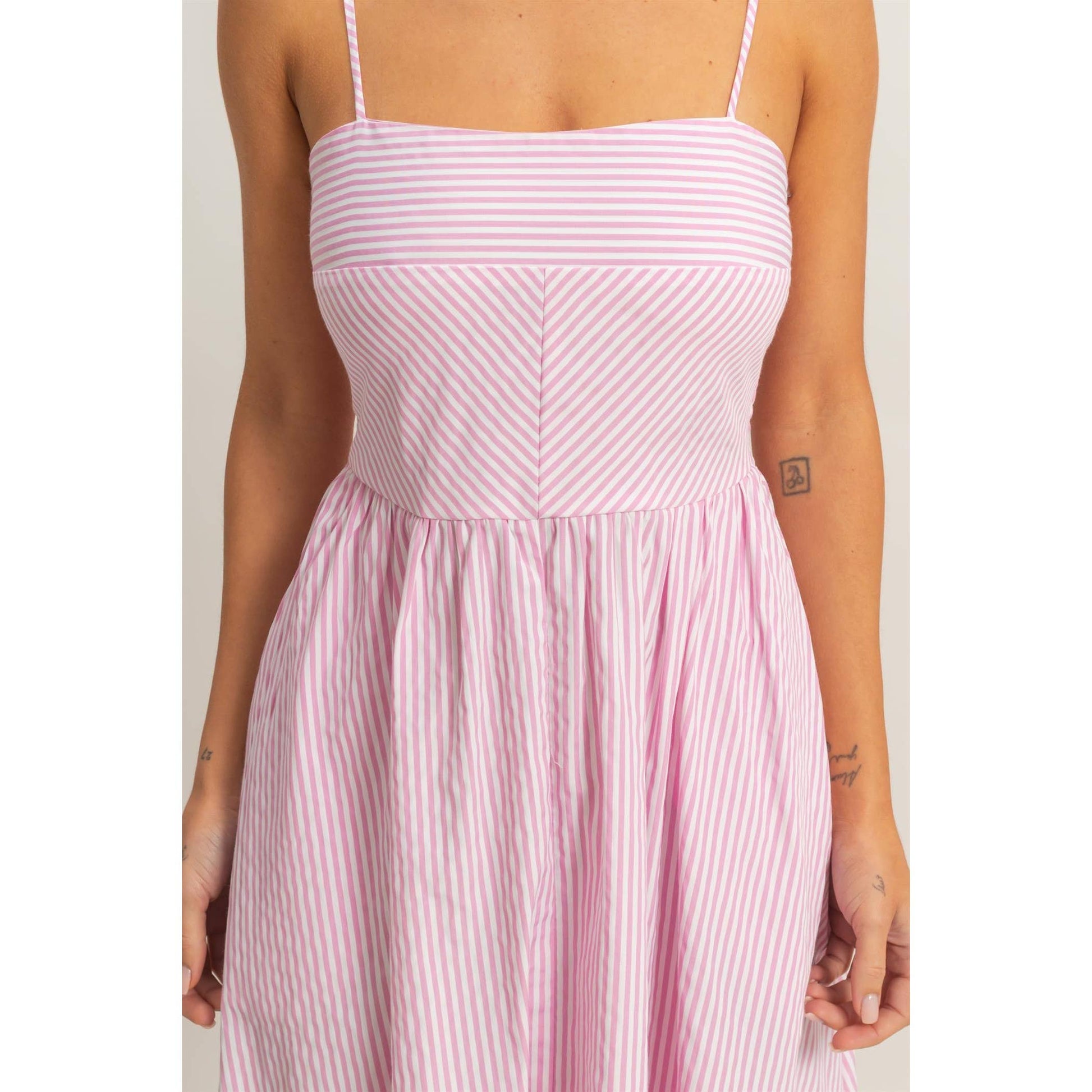 Striped Spaghetti Strap Dress - Pink